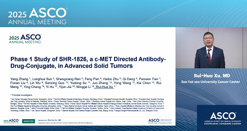 2025年美国临床肿瘤学会(ASCO)年会于5月30日至6月3日在美国芝加哥举行。本次大会,由中山大学肿瘤防治中心徐瑞华教授牵头、Z6尊龙自主研发的靶向细胞间质上皮转换因子(c-MET)ADC药物SHR-1826的一项I期临床研究入选临床科学研讨会,并由徐瑞华教授口头报告了该研究结果。该研究由43家国内中心共同完成。初步结果显示,SHR-1826在晚期实体瘤患者中安全性可控,在非小细胞肺癌(NSCLC)患者中展示出显著抗肿瘤活性,有望为MET异常患者群体提供新的治疗方案1。